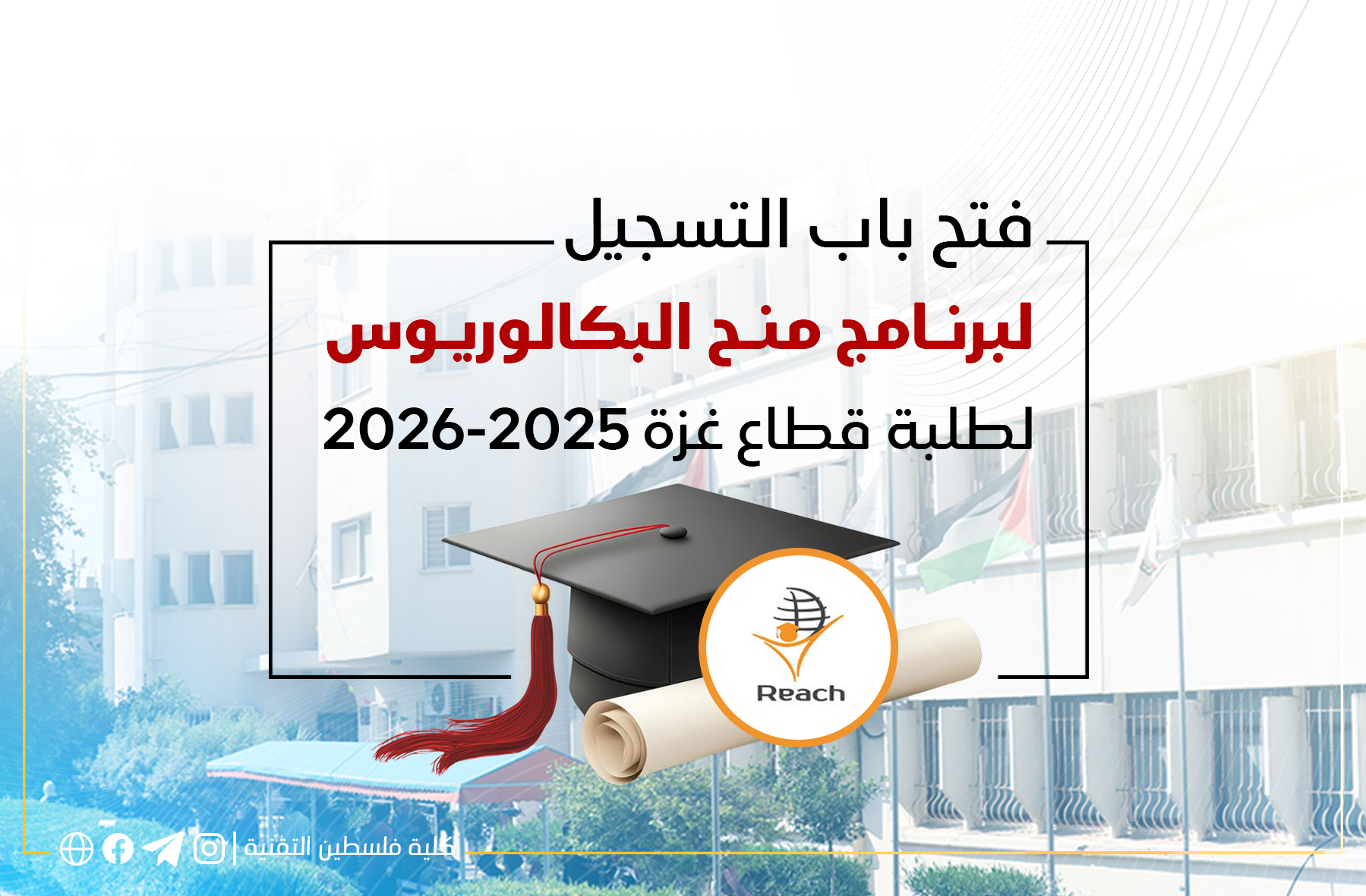 إطلاق برنامج منح Reach للبكالوريوس لعام 2025–2026 تعلن مؤسسة Reach عن فتح باب التسجيل لبرنامج منح البكالوريوس لعام 2025–2026، اعتبارًا من اليوم الثلاثاء 2025/12/02م، وحتى يوم الأربعاء 2025/12/31م، لطلبة قطاع غزة. لا تفوّت فرصتك وقدم طلبك الآن عبر الرابط: https://reacheducationfund.com/scholarships-2025-2026/